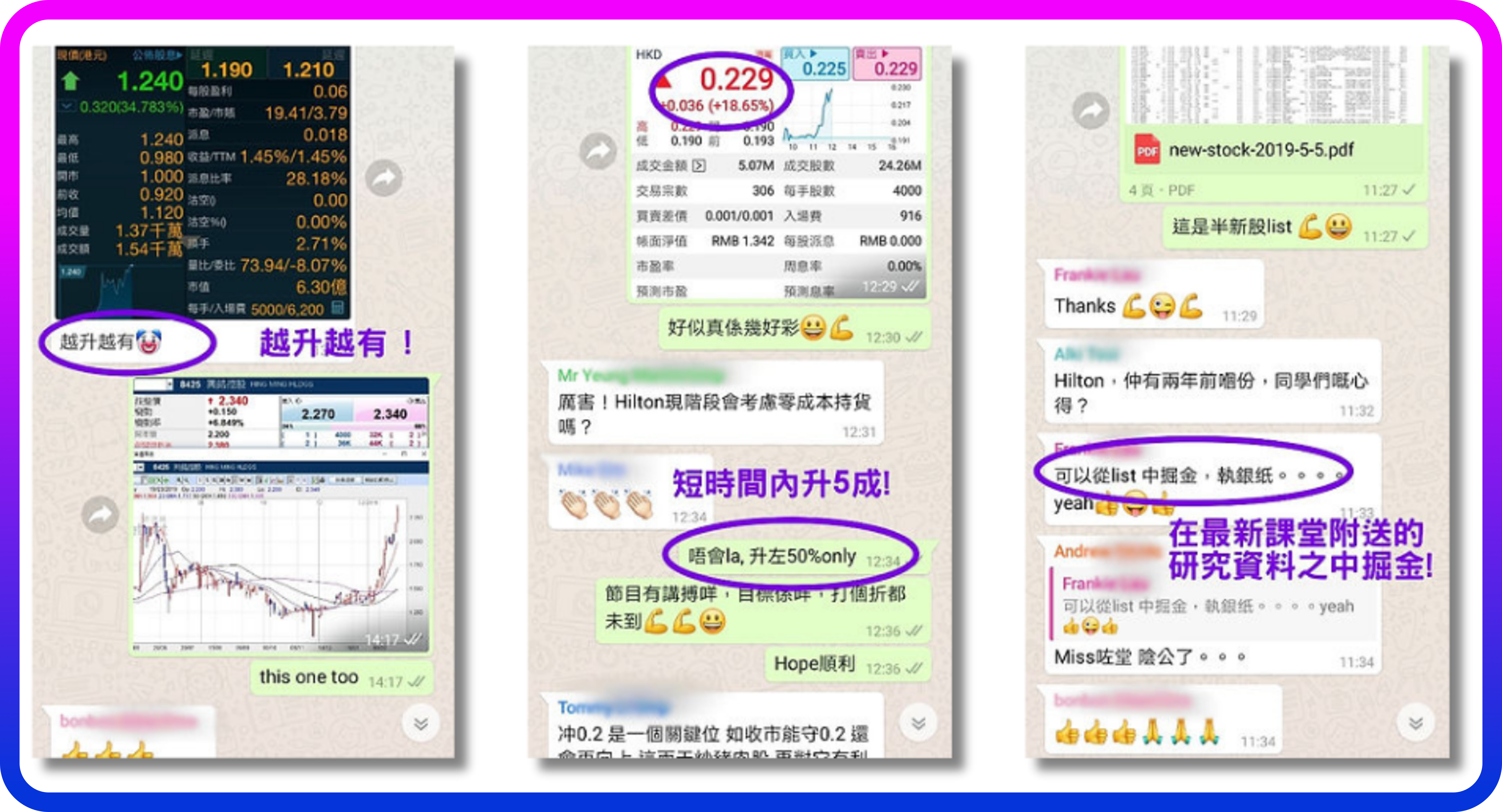 未上Hilton的全方位大價股課程之前,甚麽財技都唔知。買咗隻股,遇到供股、全購等財技都唔知點做,容易被人呃。上咗財技班後,知道莊家想做嘜,知道怎樣應付,對自己有利。所以,無論買開退休股或強勢股,都一定要上。👍🏼